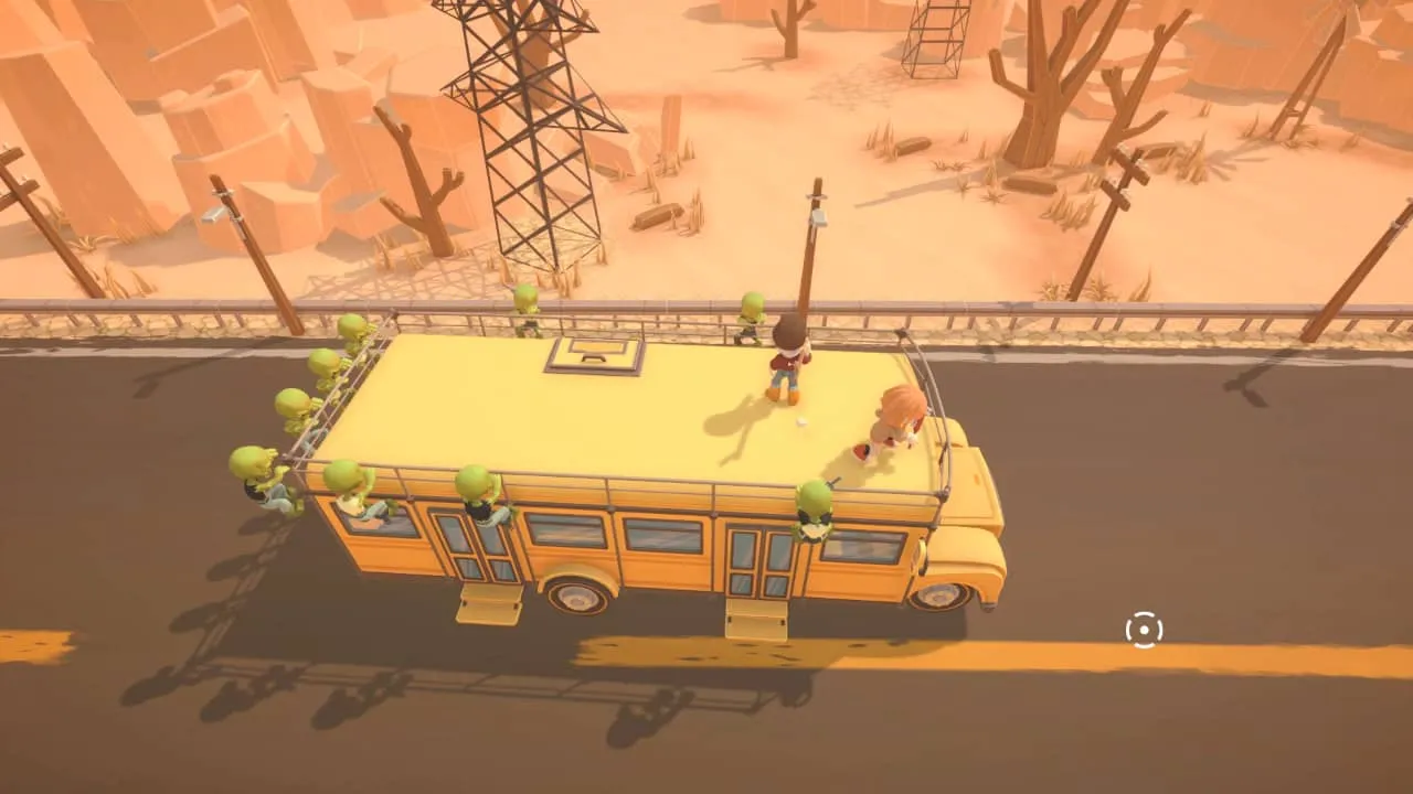 Anyway, your job is to run through a scrapyard to find parts to get the bus moving, opening up previously locked paths and bashing zombies with a tyre iron or crowbar thing. Combat is simple and unexciting. And, whether this was a Steam Deck thing, the character will only ‘aim’ upwards. You can’t direct where you’re hitting, and it is therefore a little automated. Eventually, you’ll get all the parts you need and then will make a run for it in your new wheels, befriending a pirate DJ-type guy with a hideout that’s way out of reach of the zombies, but also the shady government.