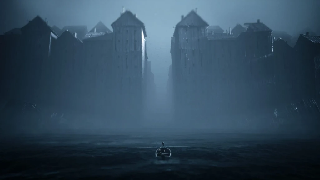 Speaking of characters, the island itself is a character. Early sections on the water set a tone of isolation that never really lifts. Once ashore, the environments shift from rotting shacks and flooded docks to overgrown industrial ruins and animal‑worshipping shrines, each area built around a clear mechanical idea. One chapter might lean on light and shadow, another on verticality and precarious climbs, another on timing your movements around patrolling monstrosities. It’s rarely subtle, but it is consistently readable, and that clarity matters when the game is asking you to solve puzzles while something huge and angry is sniffing you out.