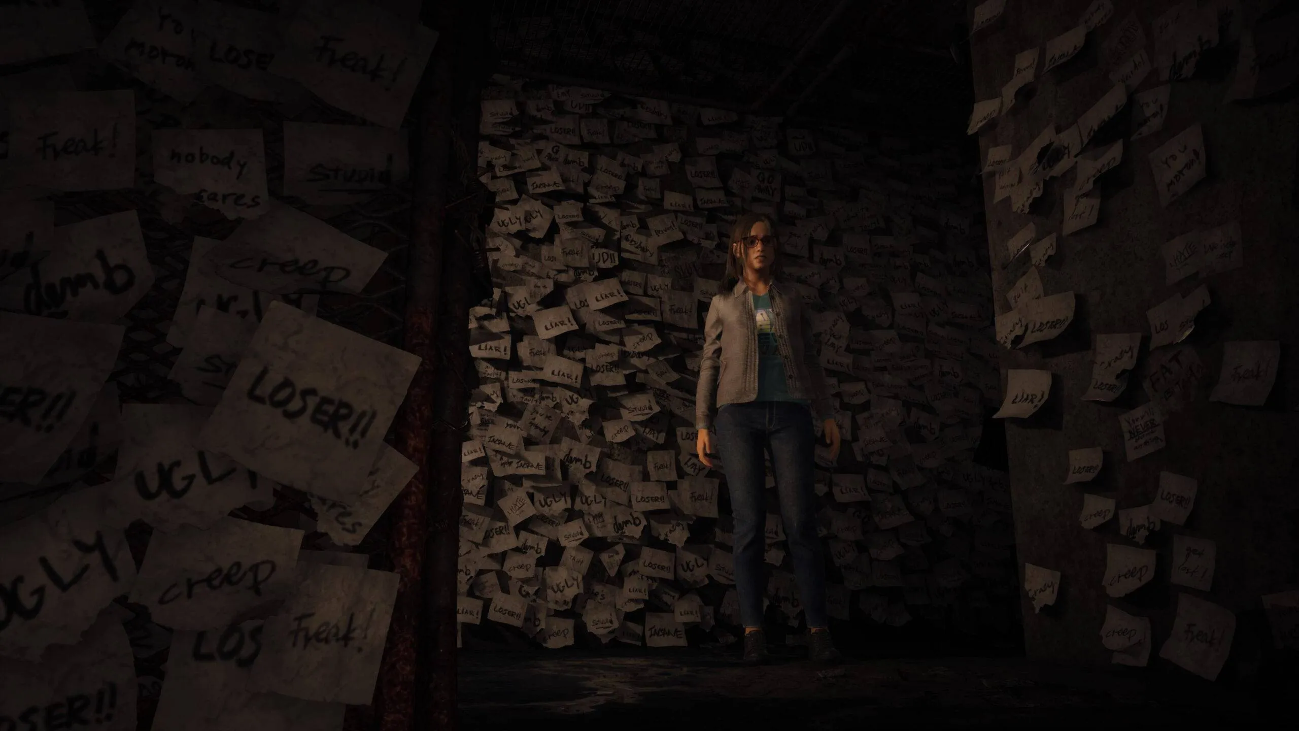 Regardless of what Short Message’s themes may argue, one can’t help but compare to the more popular Silent Hill stories. Consider the various subject matter with which previous Japanese and American developers have tackled: fatherhood, sexual abuse, PTSD, imprisonment, and so on and so forth. Think of the setpieces, enemy design, and environmental details crafted to visualise such unsettling aspects of our corruptible nature – themes made manifest. Conversely, smattering mean-girl sticky notes (“Ugly!”, “You’re Insane!”, “Liar!”) across walls and complaints over weak social media engagement feels like franchise desecration. Granted, there’s more to the story than that, but it nevertheless strikes at the heart of where this fundamentally loses the plot.