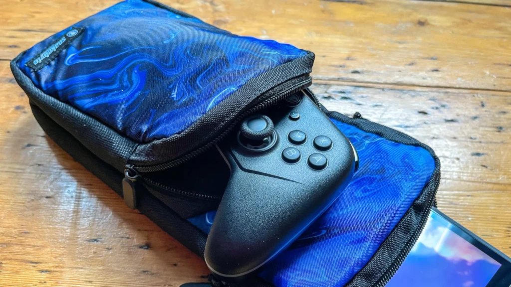 Despite a slightly smaller and seemingly snug form factor, the main compartment sized around the Nintendo Switch 2 hardware, there is a fair bit of space inside. The additional pocket can just about squeeze in a Nintendo Switch 2 Pro controller, or one of Snakebyte’s own third-party Switch 2 versions. It is a bit of a squeeze but can work. There’s no integrated game cart holder, but due to the way the zip opens from the top, players will likely benefit from using a compact cartridge wallet instead – slipping in inside the front pocket.