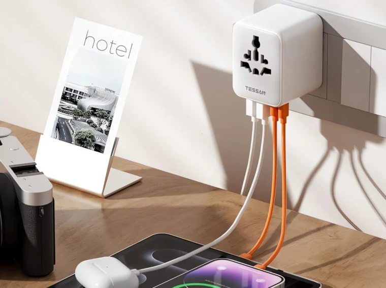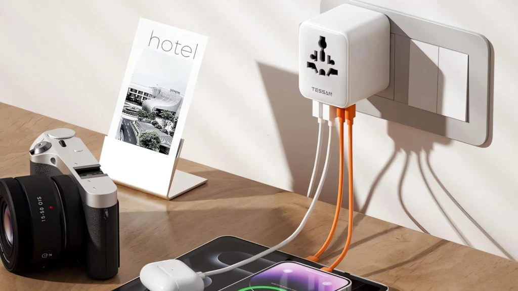 TESSAN includes several safety features that are commonly expected in modern travel adapters. The built‑in 8A fuse provides overload protection, and the unit ships with a spare fuse for emergencies. The casing uses flame‑retardant materials, and the internal design is structured to prevent short circuits. These features are highlighted across the official product page, and they contribute to the adapter’s reliability during extended travel.