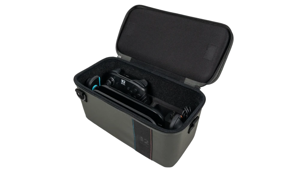 The case itself is well designed; it’s sturdy and nice to look at, with no wasted space or unnecessary embellishments. The top half is a standard Switch 2 travel case, capable of fitting the handheld console, 14 game cartridges, and a couple of small accessories/cables in the padded zip compartment. The lower half houses moulded compartments that can carry the bulk of the Switch 2’s main accessories: dock, charging brick, a couple of extra Joy-Con, and a spare Pro Controller or other full-sized gamepad.
